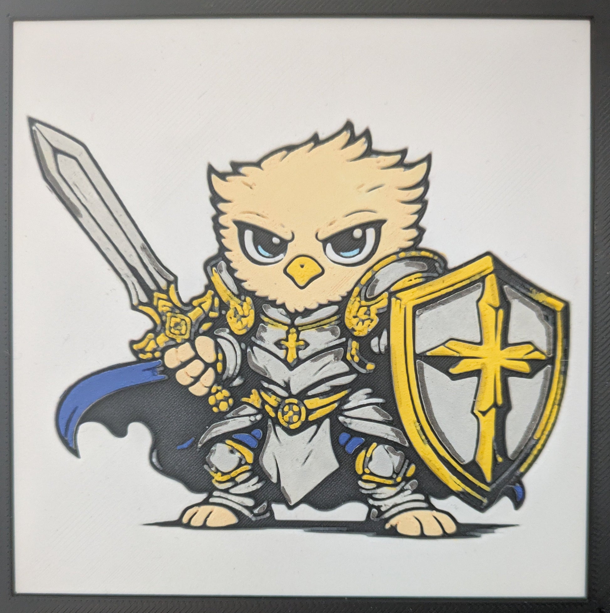 A 3D printed and hand-painted collectible sculpture, framed in a matte black LUMI frame with engraved logo.